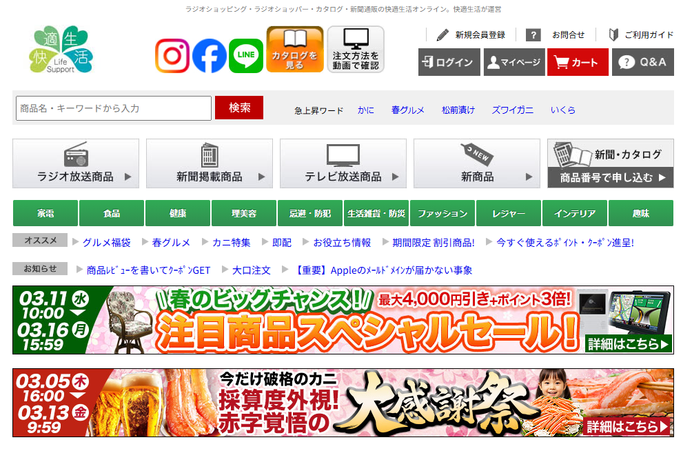 テレビ等メディアの紹介商品も多く知名度のある総合ショッピングサイトの